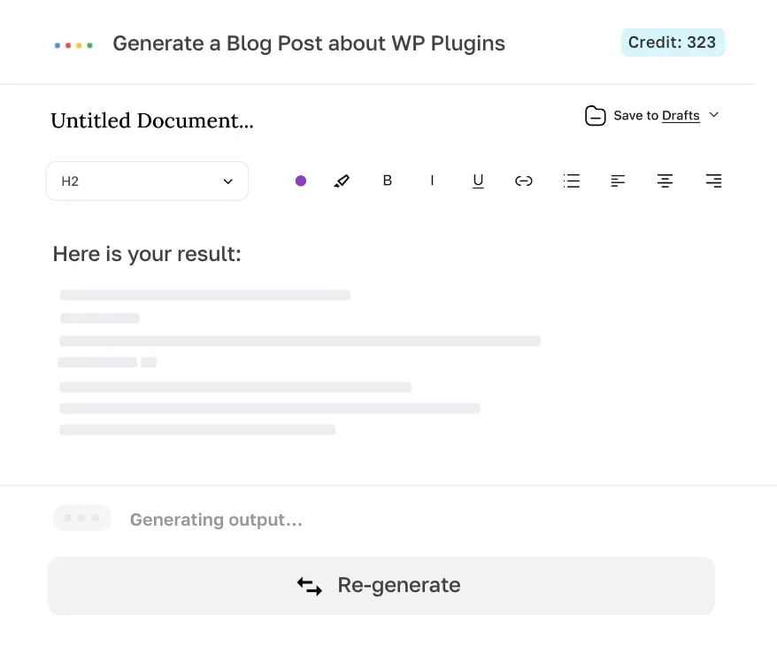 Input some basic information about your idea, brand, product, or service, and the AI would generate a unique, engaging piece of content in seconds.